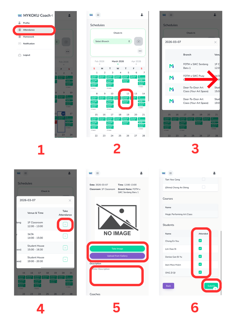 Take Attendance In MYKOKU Coach