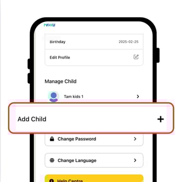 5. Profile scroll down, and click Add Child to create a Child Profile